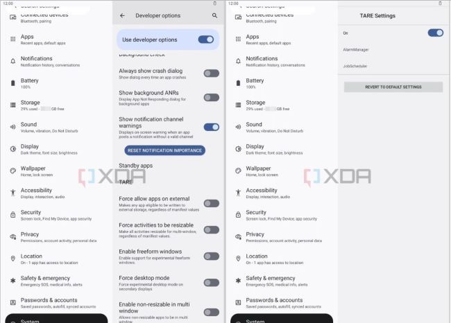 Android 13 might allow an energy-use management feature called “The Android Resource Economy” (TARE). The feature is more developer-specific, but introduces “Android Resource Credits,” as a form of currency, related to a battery's level of depletion. Apps can then use the credits as “payments” to execute tasks.