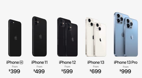 The iPhone 13 Pro will start at $999, and the iPhone Pro Max at $1099.