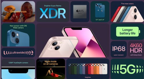 Apple also continues to enable 5G on the iPhone 13, promising connectivity to 200 carriers in 60 countries by the end of the year.