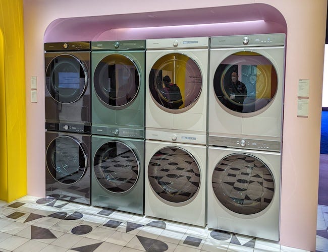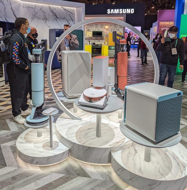 Las Vegas -- The latest options in Samsung's Bespoke Home appliance series were showcased at CES 2022 this week. Samsung revealed new color options and feature tweaks to the product family that has become especially popular among consumers for their styles that blend into home decor. Many of the devices also have various power and smart feature upgrades from models of prior years.