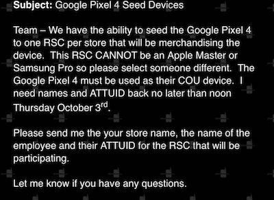 New details from PhoneArena suggest the AT&T may be a new Google carrier partner with the launch of the Pixel 4. While Verizon, T-Mobile, and Sprint already offer Pixel smartphones, this leaked email reveals information about the Pixel 4 being made available to AT&T merchandise teams. Over the years, Google has steadily added carrier compatibility to its devices with networks including, US Cellular, Visible, and its own Google Fi supporting Pixel smartphones.