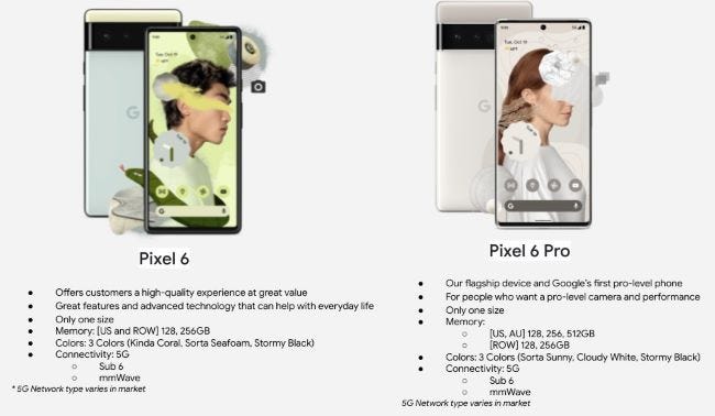 The leak shows the Pixel 6 Pro, in particular, will be available in 128GB, 256GB, and 512GB internal storage options. The Pixel 6 is expected to be available in 128GB and 256GB internal storage options.