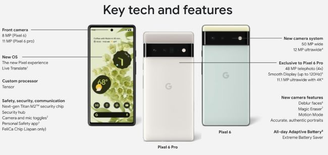 The Pixel 6 is expected to feature a 50-megapixel wide-angle and 12-megapixel ultra-wide dual-lens system with an 8 -megapixel front-facing camera, while the Pixel 6 Pro is expected to add a 48-megapixel telephoto to the rear for a triple leans set up ad have an 11-megapixel front-facing camera. The devices are set to have software features, including deblur, magic erasure, motion mode, and updates to portrait mode for more accurate, authentic shots.