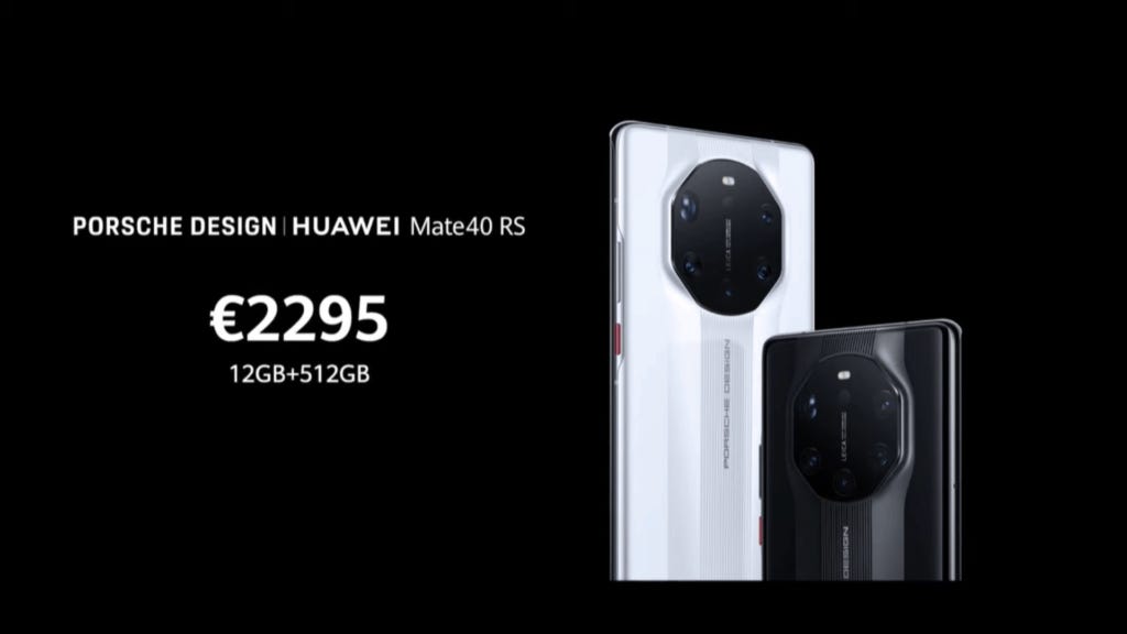 The Huawei Mate 40 RS Porsche Edition rounds out the series with beefier specs than the Mate 40 Pro Plus, a luxury Porsche-inspired design. It features 12B of RAM, 512GB of internal storage, and a €2295 price tag.