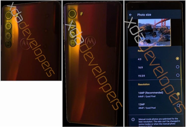 Several sources, including XDA Developers and @Evleaks have shared image leaks of the device that may be the standard Motorola Edge. Accompanying the images leaks are specs details for the Motorola Edge, suggesting the device may feature a 6.67-inch curved “waterfall” display with a 90Hz refresh rate, a single hole-punch on its left side, and an in-display fingerprint scanner. Hardware may include a Qualcomm Snapdragon 765 midrange chip, 6GB of RAM, 128GB of internal storage with microSD expansion, a 4500mAh battery.