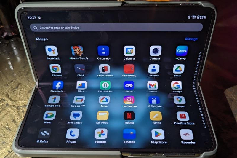 The OnePlus Open features Android 13 with an OxygenOS 13.2 overlay. OnePlus stuffed the device with its usual barrage of apps. It perhaps looked more daunting because of the larger screen real estate on the main screen, but what better way you use it, I suppose? OnePlus includes a number of service perks with the purchase of the device.