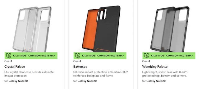Zagg's protective accessory offerings for the Galaxy Note 20 and the Galaxy Note 20 Ultra include the Gear4 cases and the InvisibleShield screen protectors.