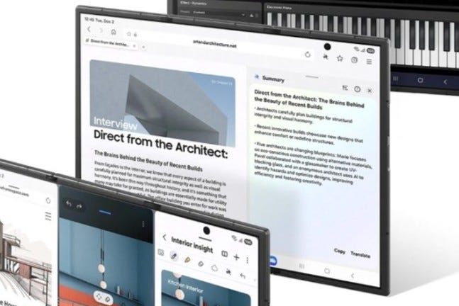 Samsung's latest Galaxy Z TriFold device introduces a new foldable form factor with three panels and two foldable sides.
