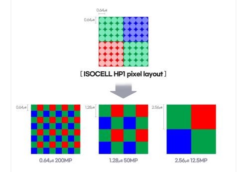 The ISOCELL HP1 uses pixel-binning to adjust between a two-by-two, four-by-four, or full pixel layout, Samsung said in a statement. The HP1's full 200-megapixel scope may be better suited for capturing detail in bright light situations. However, with pixel-binning, the camera can come down to a 12.5-megapixel image sensor "merging 16 neighboring pixels" to let in more light to capture a perfect low-light shot.