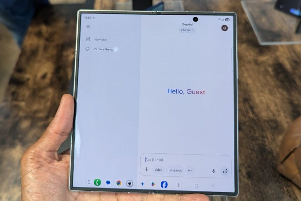 The Galaxy Z Fold 7 includes several AI highlights, such as Gemini Live with multimodal functions, which allow you to type or speak queries, or use Gemini Live or camera sharing for additional context. Circle to Search allows you to circle items on your screen to activate a search engine session. The device is also optimized for its large display, with the function AI Results View, which will show AI results in a separate split view or floating view window. Drag & Drop allows you to move AI results into different windows. Drawing Assist and Writing Assist are additional tools that you can use for creativity and brainstorming.