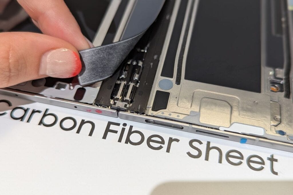 Design-wise, Samsung has employed a new Armor FlexHinge, which is woven to be thinner and lighter and supports a titanium layer internally. This aids in the device having a IP48 waterproof rating. The cover display of the device is protected by Corning Gorilla Glass Ceramic 2, while the back is protected by Corning Gorilla Glass Victus 2. Samsung said it kept the Ultra-Thin Glass that makes up the foldable main display thick to maintain the integrity of the screen. Otherwise, all of the other components are made of lighter materials. The Galaxy Z Fold 7 frame is made of Advanced Armor Aluminum, which also adds strength to the hinge and the chassis overall.