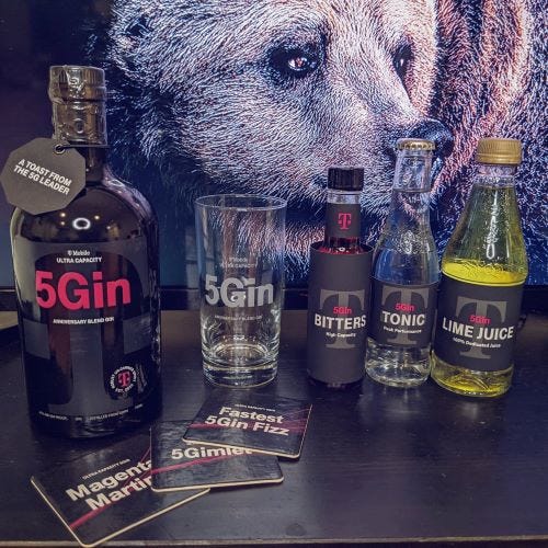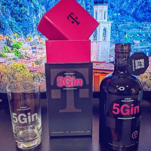 T-Mobile has bottled a Limited Edition of its branded 'Ultra Capacity 5Gin' to celebrate reaching its 5G mobile network coverage goal for 300 million people across the U.S. six months ahead of schedule.