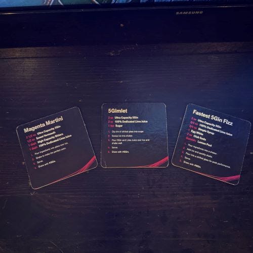 With all the pomp and circumstance that can be expected from T-Mobile, the carrier has also included at t-mobile5gin.com, a set of cocktail and mocktail recipes, such as the Magenta Martini and the non-alcoholic 5Ginger Mule.