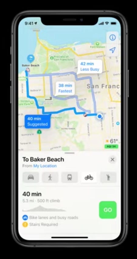 Maps, new design, favorites, create guides, indoor Maps, Look Around.