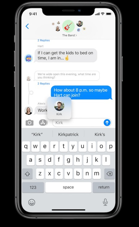 Messages - Pinned conversations so most important messages remain on top. Memoji updates including 20 new hair and headwear styles, face coverings, and age options, as well as new memoji stickers for a hug, fist bump, and blush. Group chats now include inline replies that allow users to reply to a specific person. Mentions feature allows users to tag a person a when sending a message.